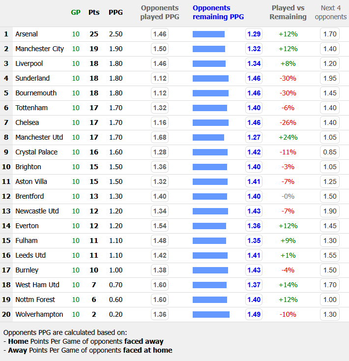 After 10 games by the far the most important factor in league position is the fixture list. One thing we haven't done this season is play a bad team, in bad form. Forest would be the closest but the Dyche factor was always going to kick in at some point. Three managers sacked in the league so far this season and we haven't played any of those teams before the manager got sacked.